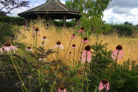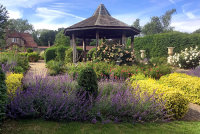 Part of the old walled garden at Eastwood Garden Centre (just north of Thornbury in Gloucestershire) was in need of rejuvenation. I devised a planting plan for four large borders centred around a rectangle of lawn, just to the east of a gazebo and traditional rose garden.