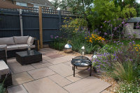 The existing patio in this suburban back garden was not very user friendly. It was on two levels and wasn't really big enough for the new garden seating that the clients had bought. I was asked to re-design this corner of the garden to include a new patio and some planting to soften the hard landscaping.